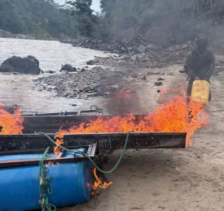 El operativo fue realizado por personal de las Fuerzas Armadas con el objetivo de frenar la explotación ilegal de recursos naturales en esta zona de la Amazonía, donde se han detectado actividades clandestinas vinculadas a la minería.